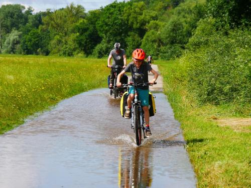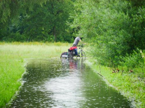 Wir haben Sommer 2021 und es regnet und regnet. Wenn zwischendurch die Sonne ihre Strahlen hinter der Sonne hervorbringt, radeln wir durch eine Mischung aus Radwegen, neu entstandenen Wasserstraßen und Matschfeldern. Wir sind hin und hergerissen. Zum einen ist da der Wunsch den ersten Teil des Donauradweges mit seinen Felsen, Wiesen und Wäldern zu erleben, diesen ersten Teil, der uns noch fehlt, endlich zu erradeln. Auf der anderen Seite schleichen sich Abbruchgedanken in unsere Köpfe. Das erste Mal seit wir reisen überhaupt. Wir schaffen es bis Ulm und auf dem Weg dorthin hatten wir trotz Regen viele wunderbare Stunden und ungewöhnlich viele „Wasser-Erlebnisse“.
