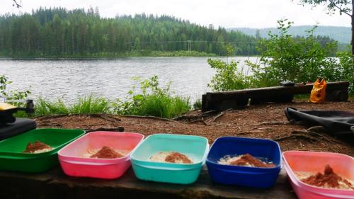 Schon auf den ersten Metern, die wir gemächlich auf dem Svärtalven paddeln, gesellt sich ein Glücksgefühl zu uns, dem auch der stete Nieselregen zu Beginn nichts anhaben kann. Wir paddeln den Fluss Richtung Süden und freuen uns, wenn wir einen Lagerplatz ohne allzu viele Mücken erwischen. Nach ein paar Tagen weitet sich der Fluss und wir gelangen an den Torrvarpen. Einen großen See, dessen Winde so richtig zermürbend sein können. So zumindest wurden wir vorgewarnt. Und was wäre eine Warnung wert, wenn sie nicht ab und an Realität werden würde? Wir durften diese Realität live erleben und können sie kurz und knapp beschreiben: 2 Meter vorwärts paddeln, 3 Meter vom Wind zurück geworfen werden..