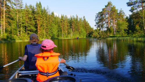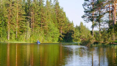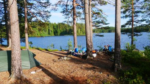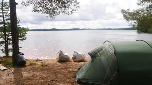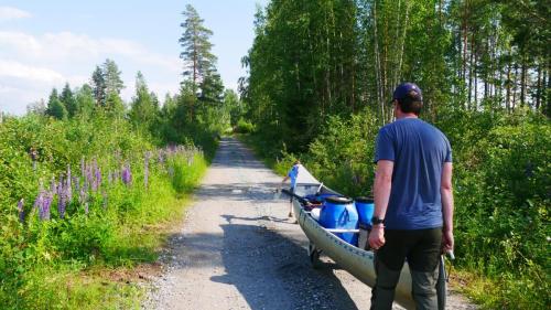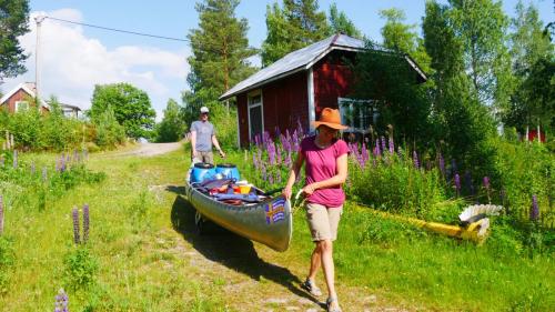 Der Ausweg aus dieser scheinbar ausweglosen Situation ist nicht etwa das Antrainieren besonderer Muskelkraft, sondern es sind die netten Anwohner, die am Seeufer in regelmäßigen Abständen in schmucken Schwedenhäusern wohnen. Sie laden einen ein auf ihr Grundstück zu kommen, zu pausieren und zur Ruhe zu kommen. Und wenn der Wind zum Sturm wird, dann kann man auch mal mit seinen Kanus eine kleine Wanderung über Land unternehmen und dabei direkt beim nächsten Supermarkt, an Land versteht sich, Halt machen.