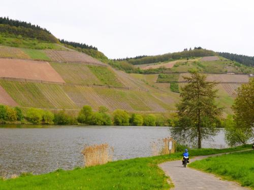 Es ist heiß. Sehr heiß. Wir essen bereits das dritte Eis und können uns kaum vorstellen morgen unseren Zeltplatz zu verlassen um in die Pedale zu treten. Immer der Mosel entlang. Mal auf der deutschen Seite, mal durch Luxemburg. Und dennoch: am nächsten Morgen packen wir früh zusammen und fahren bei strahlendem Sonnenschein los. Doch statt nach geeigneten Zeltplätzen Ausschau zu halten, liegt unser Fokus bei dieser Radtour zunächst auf den Eisdielen entlang des Weges. Zumindest solange die Sonne noch hoch oben am Himmel steht. Wir stellen fest: das Eis schmeckt super, die Mosel ist schön und die Weinberge sind toll – auch wenn wir keinen Wein mögen.